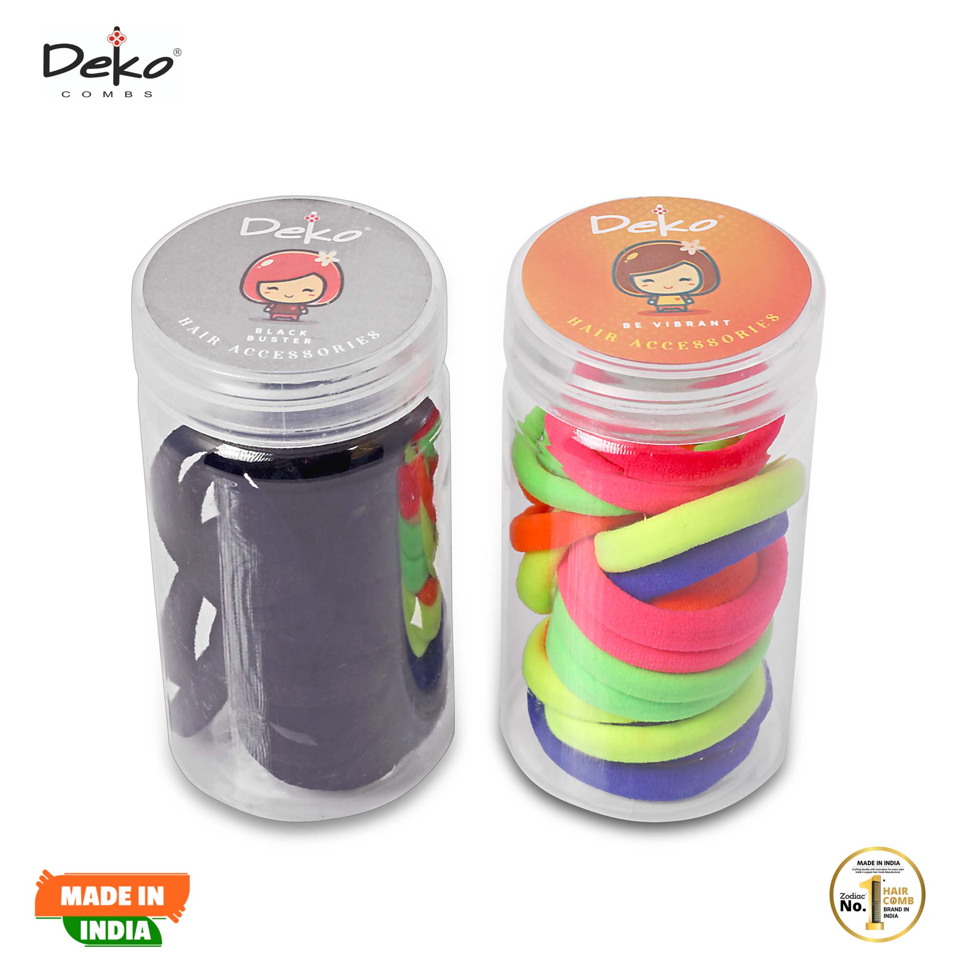 Add a bold pop of energy to your hairstyle with the Deko Neon collection. This set pairs high-visibility fluorescent shades with classic black, making it the perfect choice for kids, sports, or creative festival looks.
