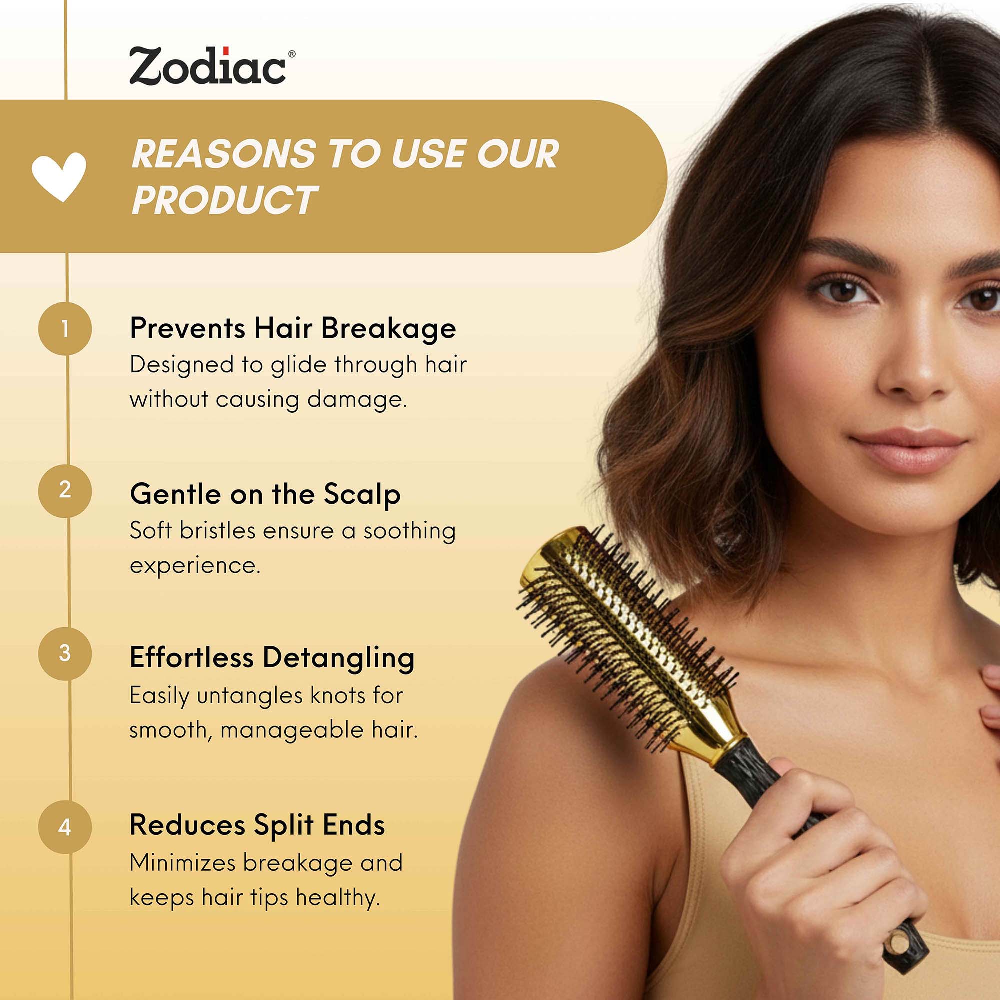 • 1 × Zodiac Diamond Flat Hair Brush – Chrome Gold